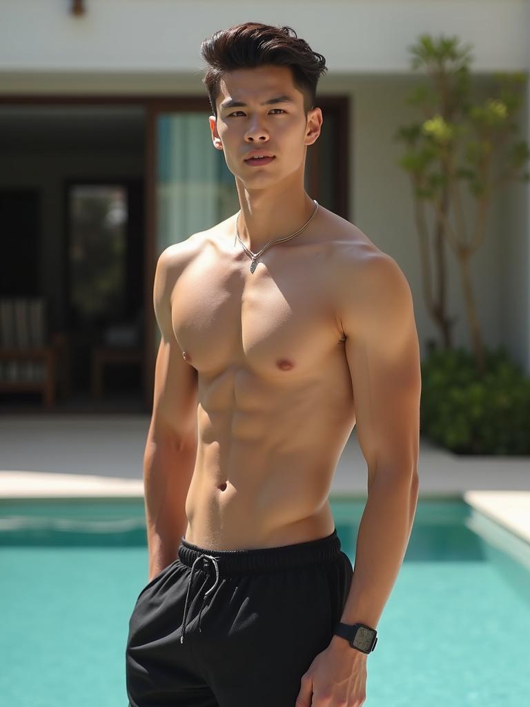 Posing near the pool for social media.